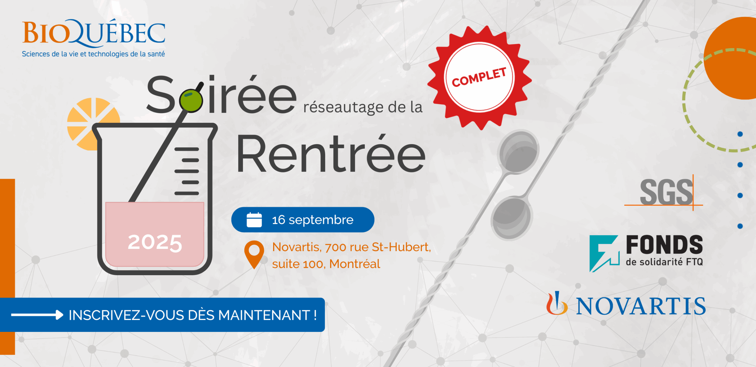 Reserve your spot now for the Back-to-Business Networking Evening, a must-attend event taking place on September 16th at Novartis, 700 St-Hubert Street, Suite 100, Montreal (Quebec) H2Y 0C1.